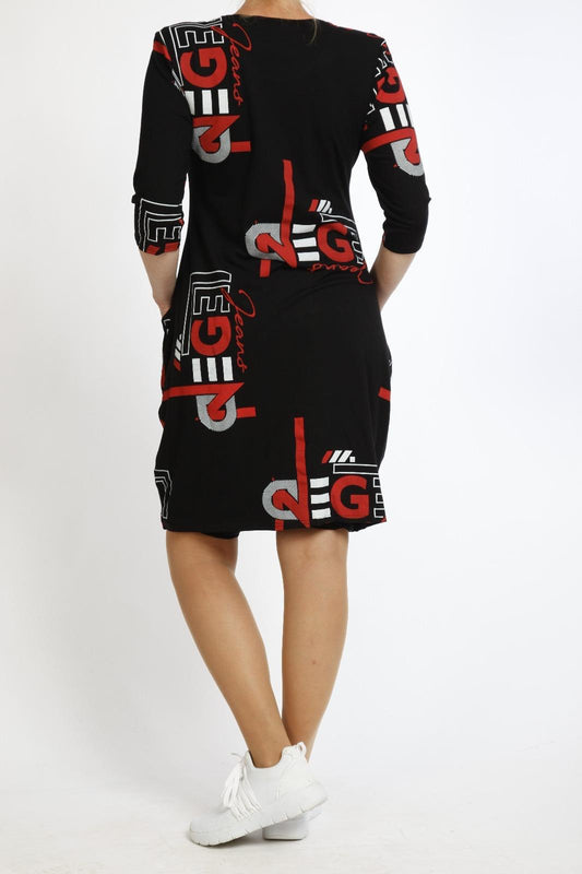 Damen Designer Tunika Grafikprint 3/4-Ärmel Knielang