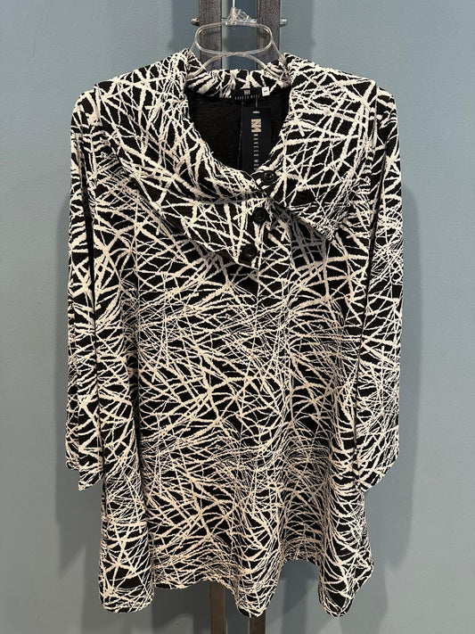 Damen Tunika Shirt schwarz-weiß Wirbel-Print mit Revers Pinselstrich Muster mit Schalkragen
