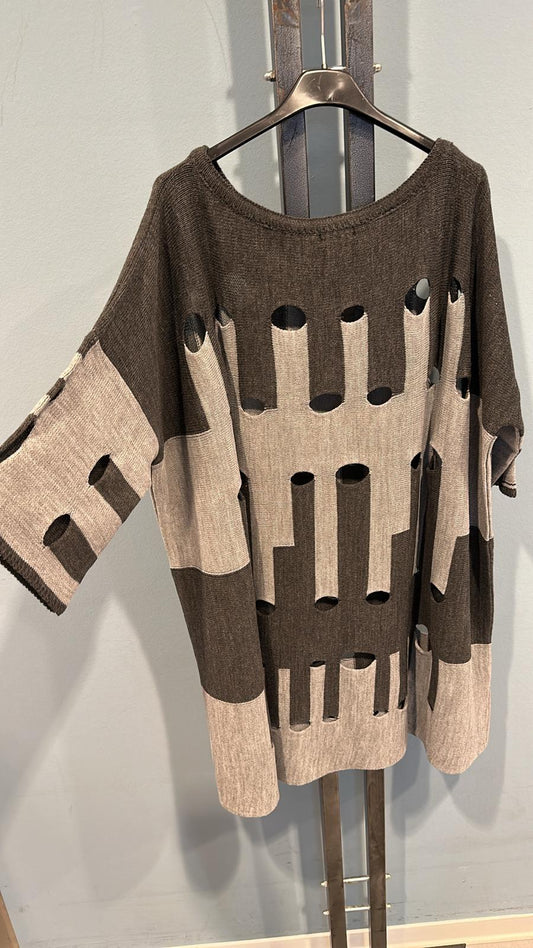 Oversize Damen Strickpullover Cut-Outs Farbkontrast One Size Trendy