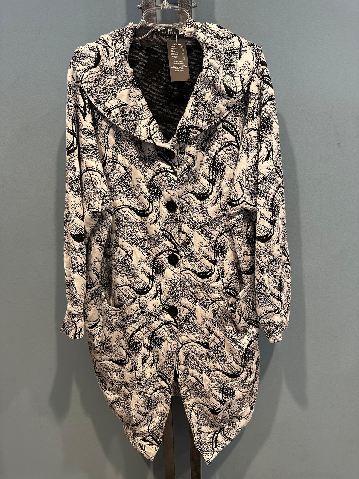 Kurzmantel Schwarz-Weiß mit Wellenmuster | Strukturiert