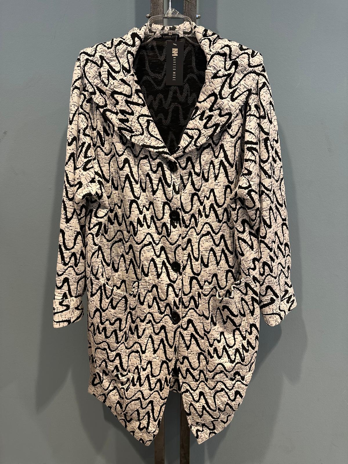 Modern & Elegant: Kurzmantel Schwarz-Weiß mit Wellenmuster